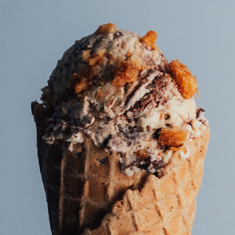 Inspired by an all-time favorite candy bar from Scotland. We make honeycomb toffee from scratch and mix it into a silky, milk chocolate ice cream base. The result? A rich, crunchy, caramelized, chocolate treat.